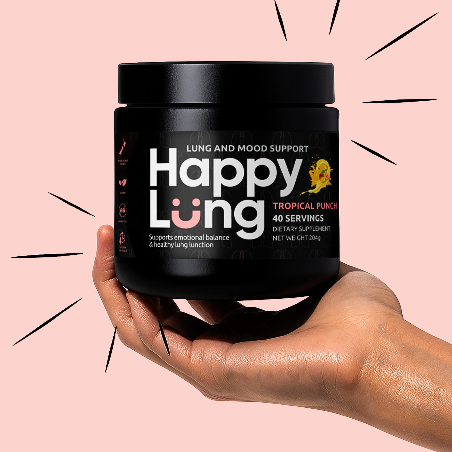 Only HappyLung™ combines nutrients that support lung health, mental clarity, and calm in one simple daily drink.